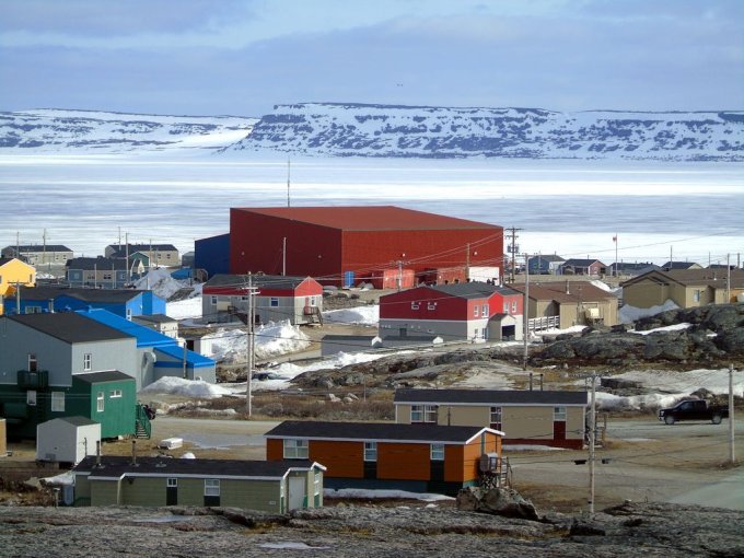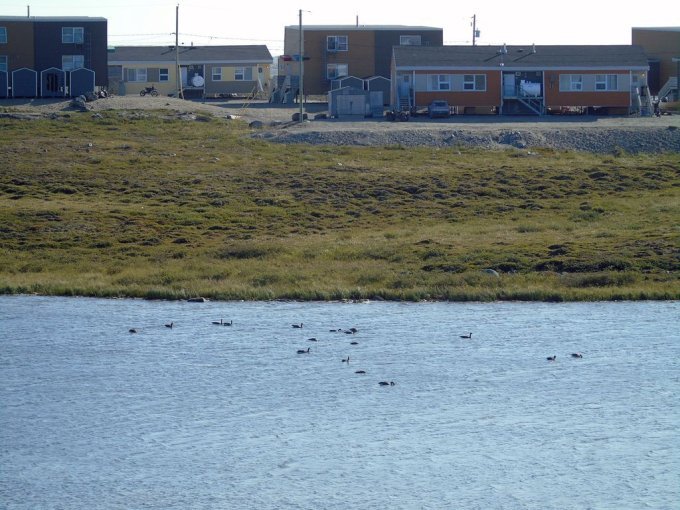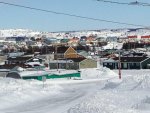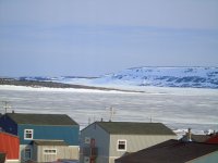 nous longeons le chemin qui rejoint le lieu appelé le plateau, ou se trouve un terrain de golf, qui surplombe la rivière ou s’arrête les bateaux cargos. Je reconnais bien tous ses endroits vu du ciel. Je vois mon logement vue du ciel, le radar et enfin le village de Kuujjuaq puis l’aéroport.