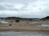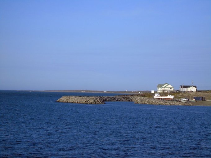 Puis nous retraversons la rivière et la longeons jusqu’à l’embouchure. C’est magnifique. Nous voyons les cabines au bord de la rivière et la Baie d’Ungava. Splendide !!!