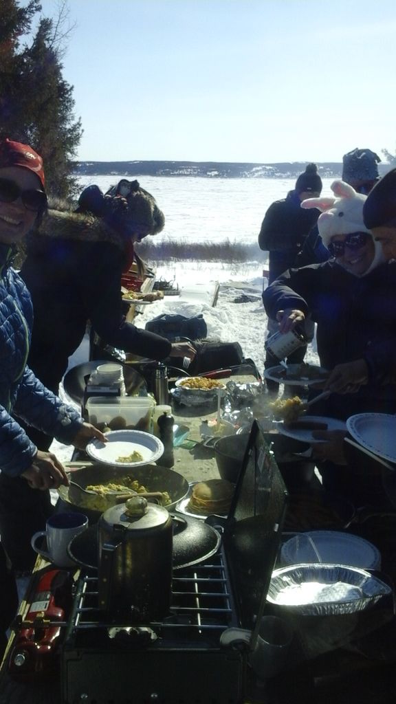 Nous avons également eu droit, bien entendu, à la tire d’érable. Le tout fut préparé de mains de maître, avec un sirop d’érable cuit jusqu’à atteindre la bonne température. Un régal sur une neige pure !!!!
