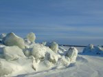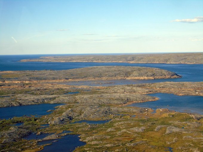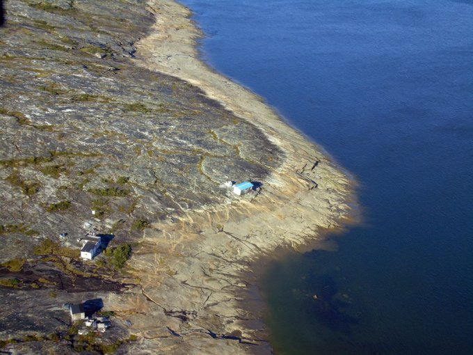 Puis nous retraversons la rivière et la longeons jusqu’à l’embouchure. C’est magnifique. Nous voyons les cabines au bord de la rivière et la Baie d’Ungava. Splendide !!!