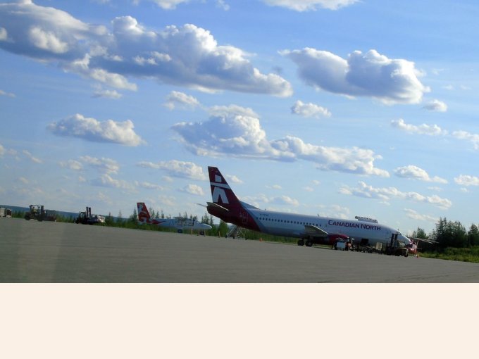 Nous voyons à nos côtés l’avion de Canadian North qui amène les gens à Montréal. Le décollage n’a rien à voir avec Canadian North. Très impressionnant !